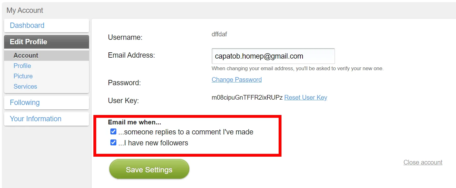 Теперь открываем IntenseDebate.com, идем в «My Account», открываем раздел «Edit Profile» и выбираем «Account». Здесь можно включить уведомления для админов (когда комментарии ожидают модерации или когда получен новый комментарий):
