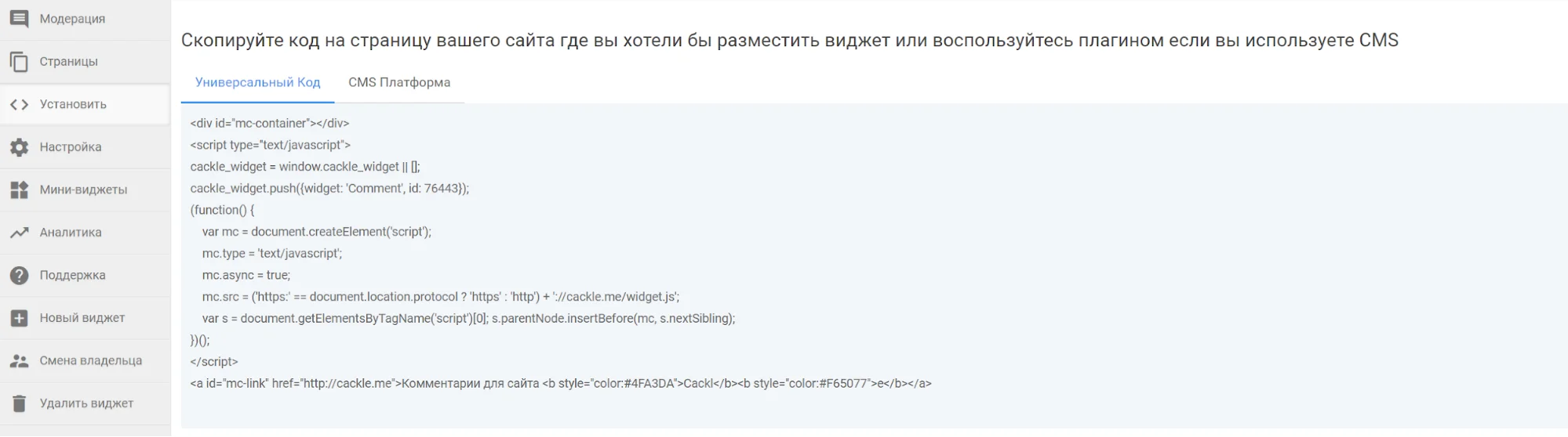 1) Скопировав HTML-код Cackle в HTML-код страницы, где нужен виджет комментариев.
