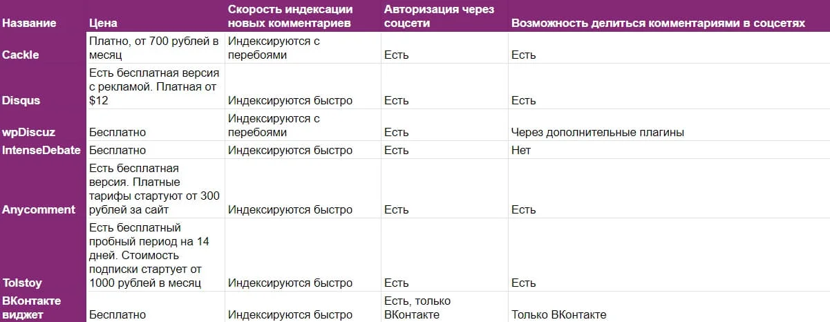 Чтобы определиться с сервисом было проще, собрали их в сравнительную таблицу.