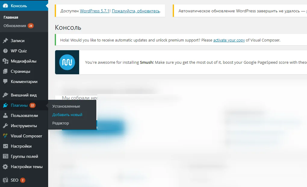 Открываем админку WordPress, идем в раздел «Плагины»: