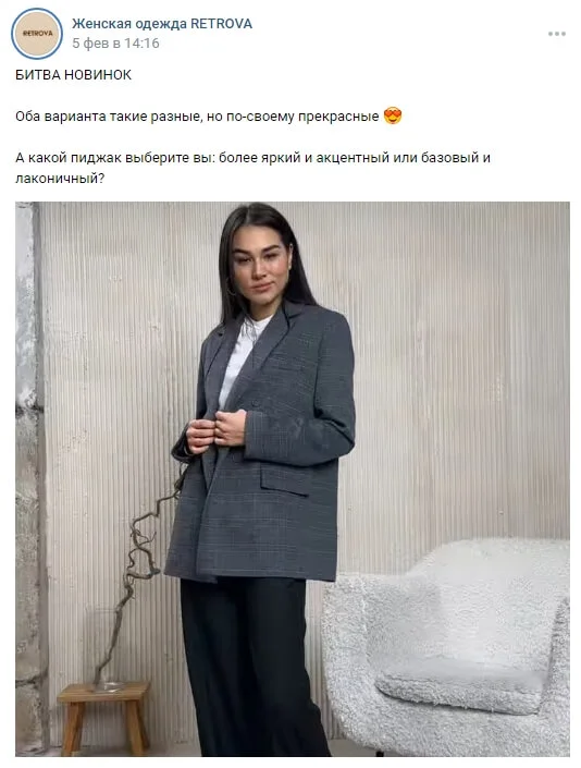 Но главное — почти все посты магазина одежды должны быть с фотографиями. Без фото люди не поймут, нравятся им эти джинсы или нет. Хотят они быть модными или нет.
