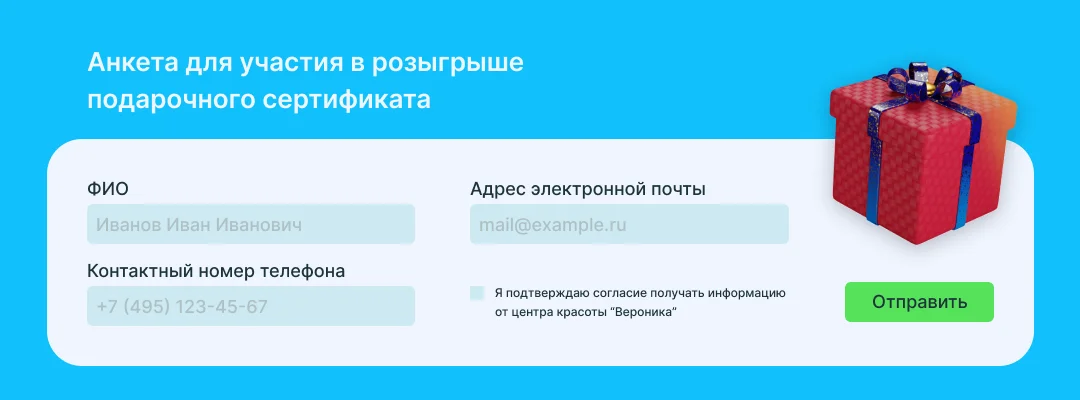 Форма подписки и анкетирование. Этот прием часто используется для сбора email-адресов, но поле с номером можно использовать как необязательное. Главное, создать ценность, чтобы клиенту было интересно заполнить анкету. Можно мотивировать скидкой, промокодом в ответном сообщении, розыгрышем сертификата.