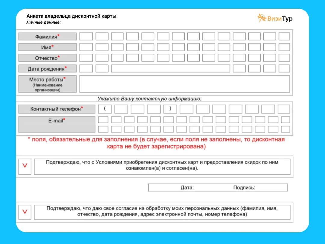Активация скидочной карты. Для активации скидочной карты обычно нужно заполнить анкеты — в этой анкете как раз и можно предусмотреть чекбокс о получении рекламных сообщений. Добавьте в нее поле о соглашении на подписку.
