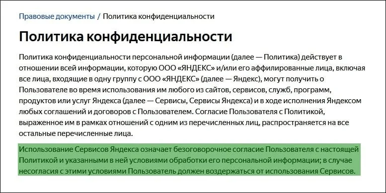 Текст также должен содержать ссылку на документ, где вы описываете порядок работы с персональными данными. Такой документ может называться «Политика конфиденциальной информации», «Пользовательское соглашение» или «Оферта» — с юридической точки зрения разницы нет. Все эти документы регулируют обработку персональных данных пользователей.