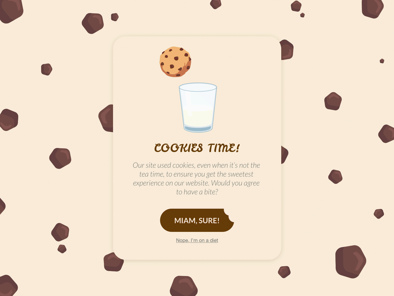 Значки с печеньем хороши тем, что позволяют пользователю сразу же понять, что за всплывающее окно перед ним. Если пользователь часто сталкивается с подобными сообщениями и не имеет ничего против использования куки, он скорее всего даст согласие, даже не вчитываясь.