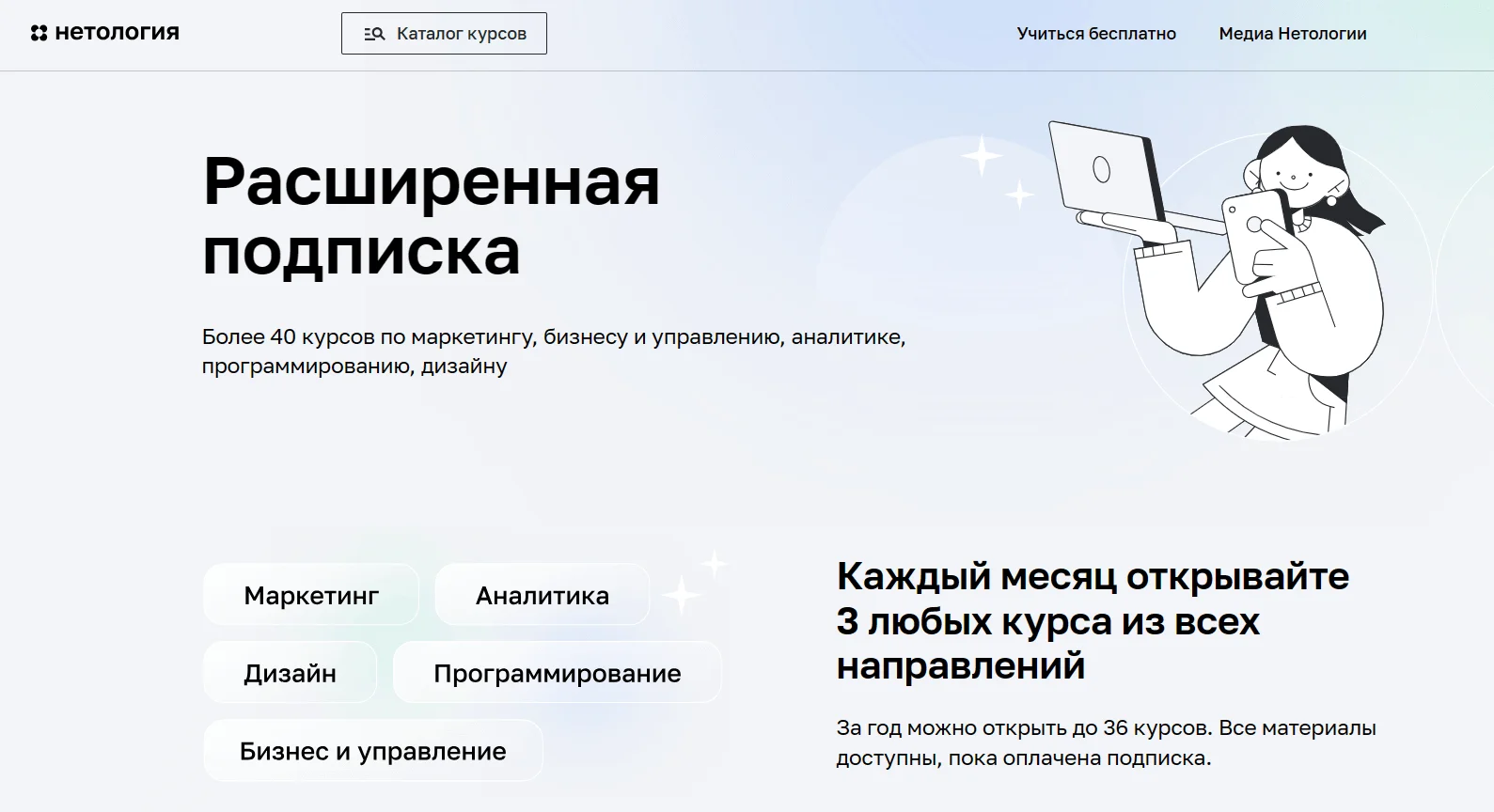 Сегодня использование обучения на основе подписки можно найти в самых разных вариациях. Это и большие программы, ориентированные на получение новой профессии, и закрытые клубы с образовательными материалами. Весомый плюс такого образования — доступность и гибкость. Учащийся может решать, сколько времени ему нужно на освоение программы и, соответственно, какую сумму нужно потратить.