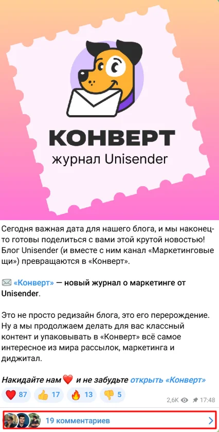 Добавить группу. Тогда подписчики смогут обсудить любой пост в специальном мини-чате. Это хороший инструмент для увеличения вовлечённости и формирования комьюнити. Группу как и канал можно сделать частной или публичной. Если сделаете ее публичной — найти ее смогут любые пользователи. Даже те, что не подписаны на ваш канал.