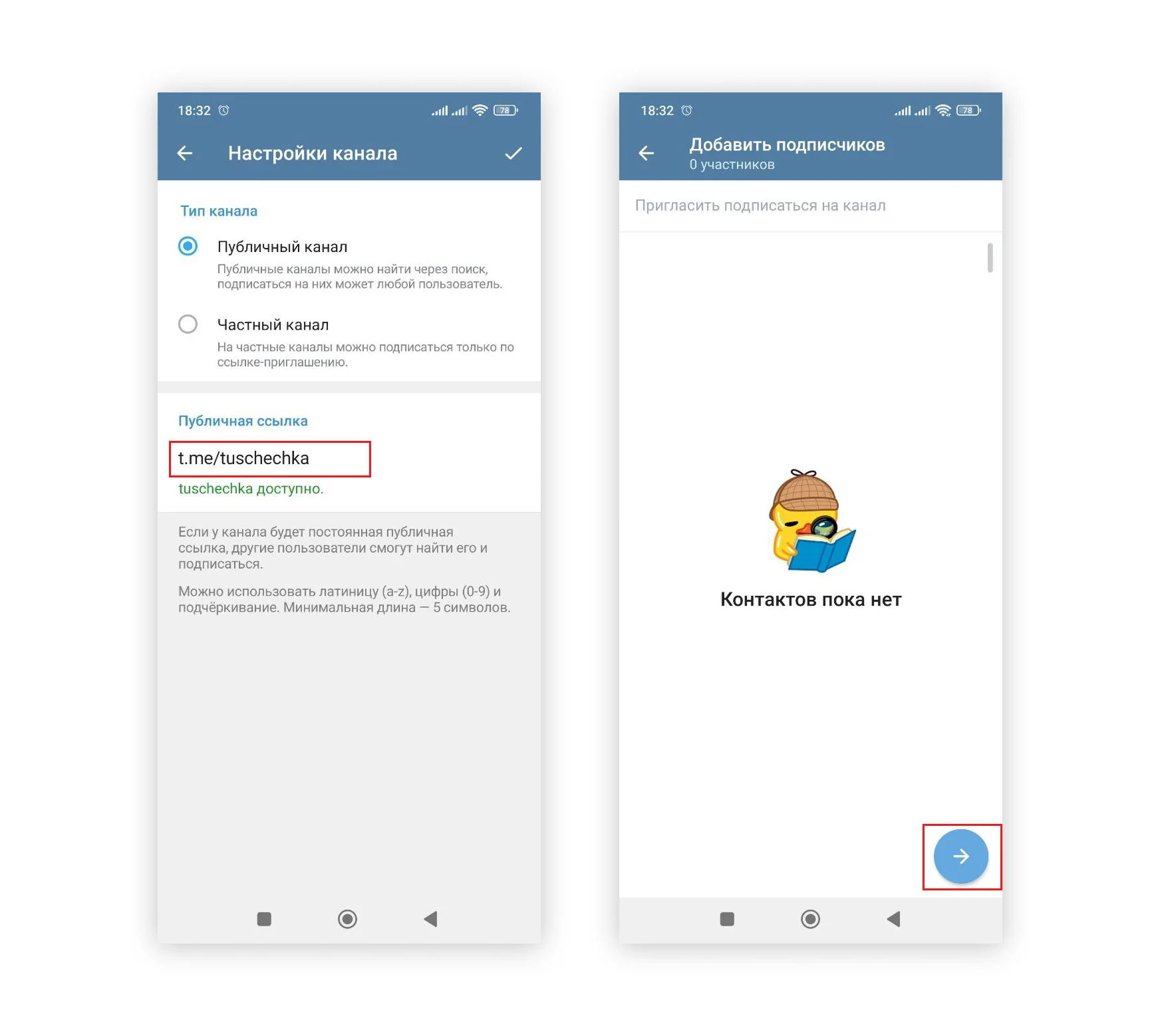 4. Дальше как в Telegram Desktop: нужно выбрать тип канала, придумать публичную ссылку, пригласить пользователей подписаться на канал.