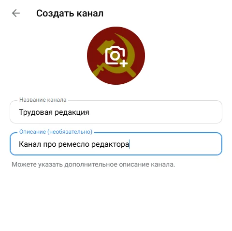 Описание. Здесь тоже можно использовать любые символы и смайлики, а также ссылки на Telegram и внешние сайты. И даже хештеги — по ним можно искать внутри канала. Ограничение по объему текста — 255 символов.