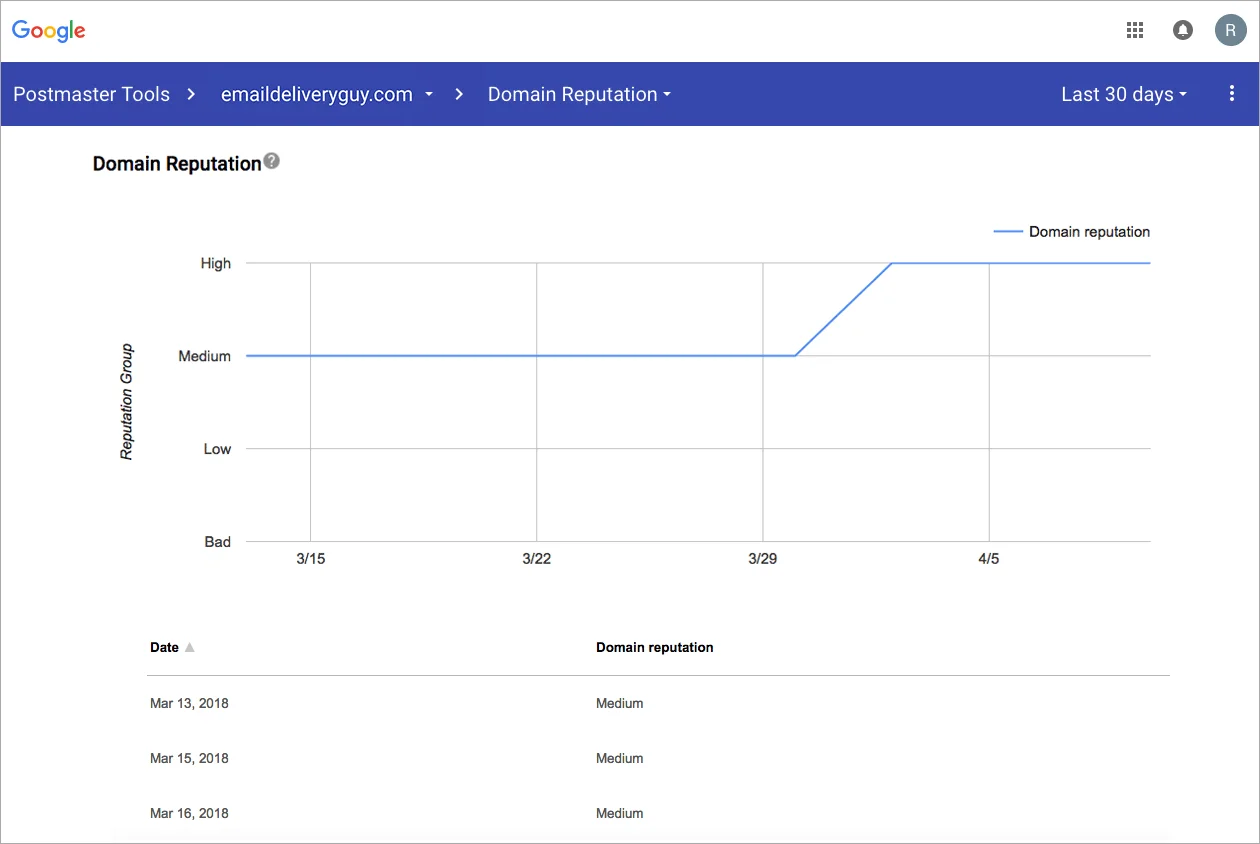 Вот, какую информацию показывает Gmail Postmaster касательно спама: