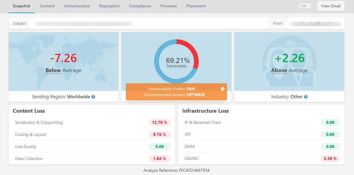 Что можно посмотреть: доставляемость на разные почтовики, настройки email-аутентификации, ошибки контента и вёрстки, репутацию домена в динамике, соответствие GDPR, предпросмотр на разных устройствах.