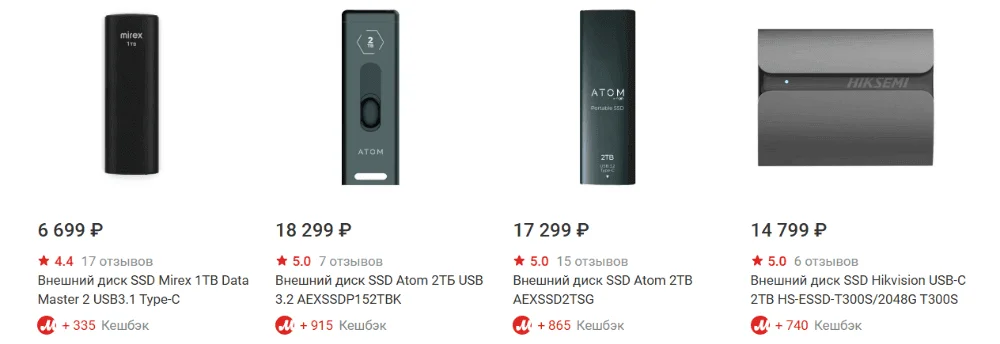 Внешние SSD-накопители обеспечивают высокую скорость доступа и стабильность работы. Они компактны, тихие и удобны для частого использования. Однако ресурс записи ограничен, а перегрев может снижать скорость работы.