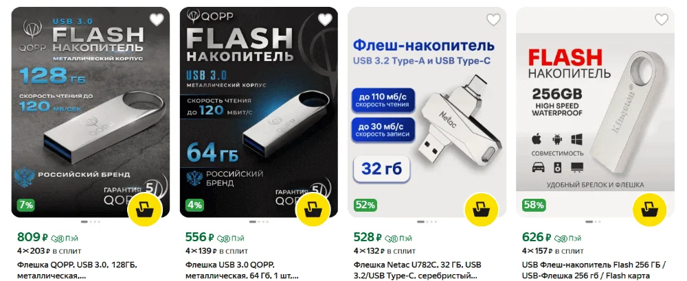 | Стоимость: | Низкая за малые объёмы (32–64 ГБ). В среднем 500–1000 ₽ за 64 ГБ. |