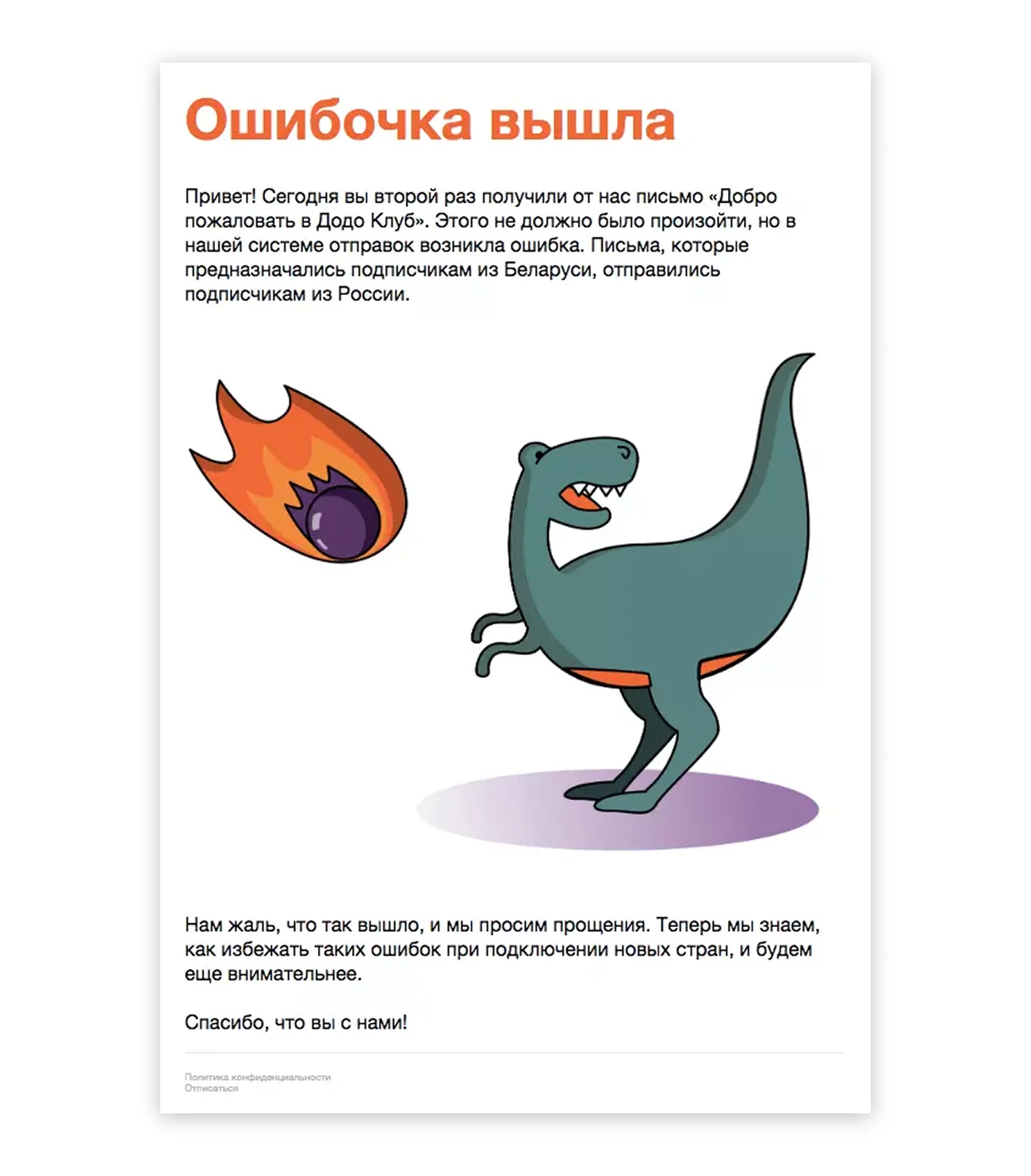 Извинения — это очень по-человечески, а иногда ещё и очень выгодно. Если добавить к извинениям подарок или скидку, это может дать сильный коммерческий эффект. Но есть нюанс. Извиняться стоит за существенные проблемы, когда читателю нанесён ощутимый урон. Все остальные случаи — это манипулирование.