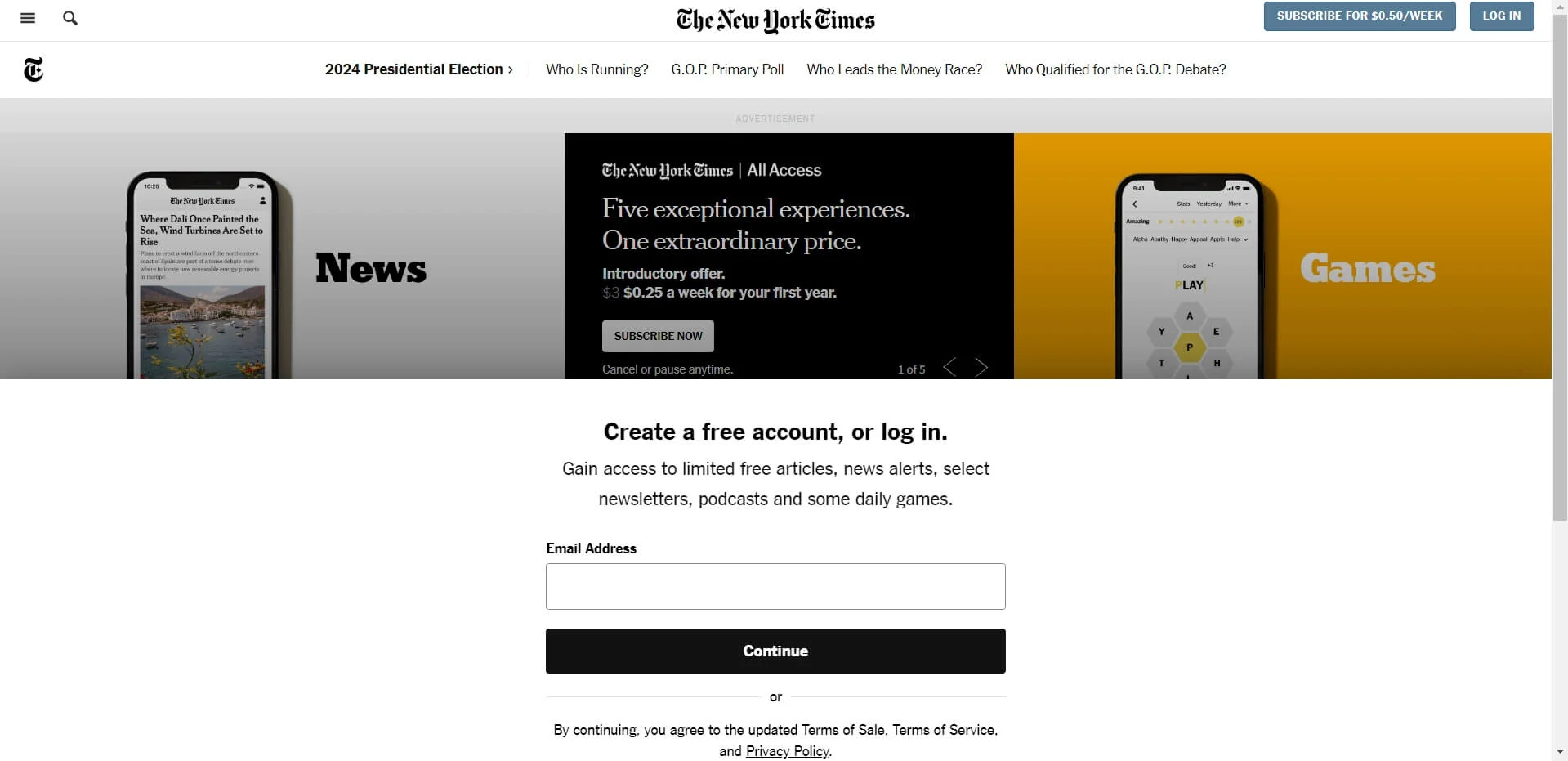 А вот другой пример — газета The New York Times не дает пользователям читать статьи, пока те не укажут email.