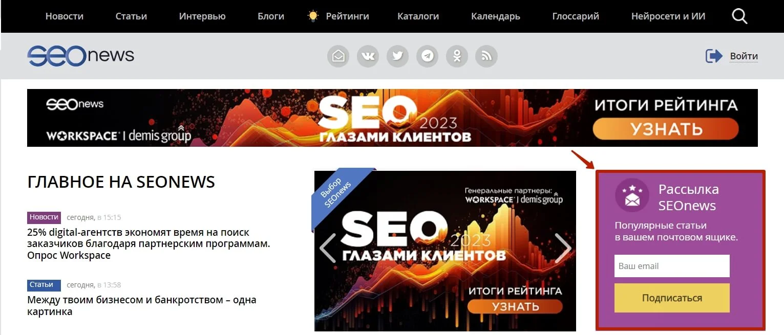 Если вашу компанию знают и рекомендуют, не лишним будет оптимизировать страницу подписки под ключевые слова, чтобы получать подписчиков из поисковых систем. SEO-продвижение — условное бесплатное, но потребует усилий.