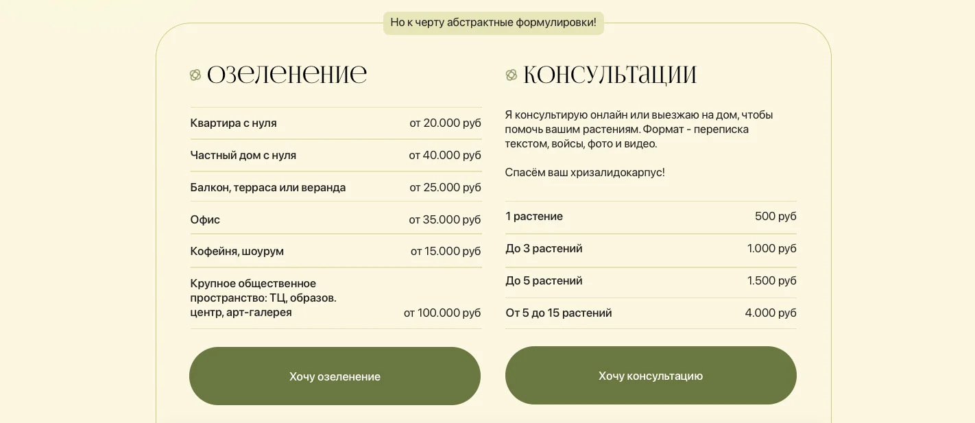 «Цены» или «Тарифы» — необходимый блок на лендинге.