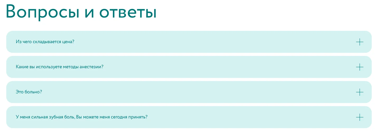 Этот блок хорошо закрывает возражения клиентов. В нем собраны часто встречающиеся вопросы и ответы на них. Также здесь дают пояснения технического характера: условия оплаты, доставки, возврата.