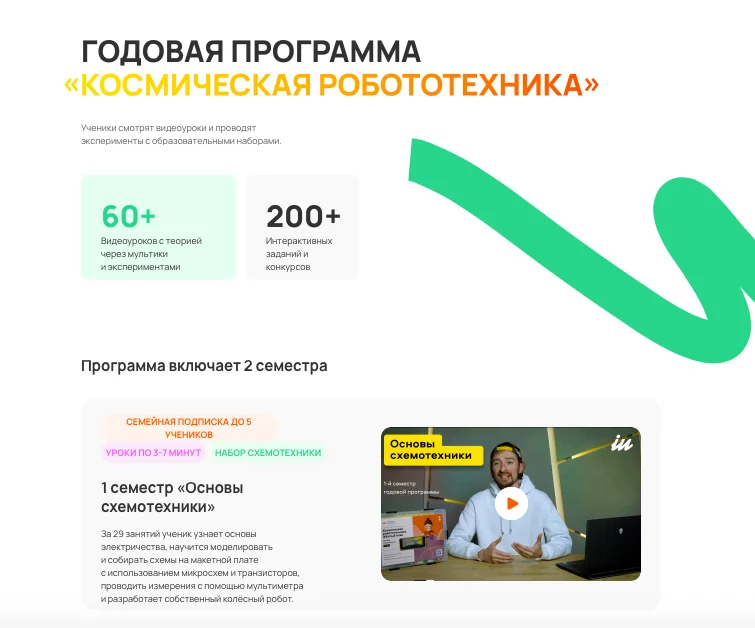 Этот блок описывает идею. Обычно он расположен сразу после обложки, чтобы дополнить информацию с первого экрана — убедить посетителя, что он пришел именно за тем, что искал.