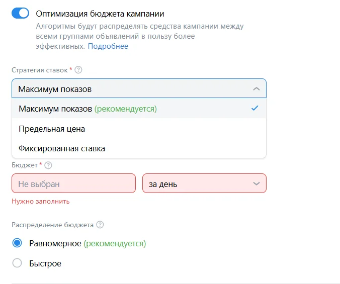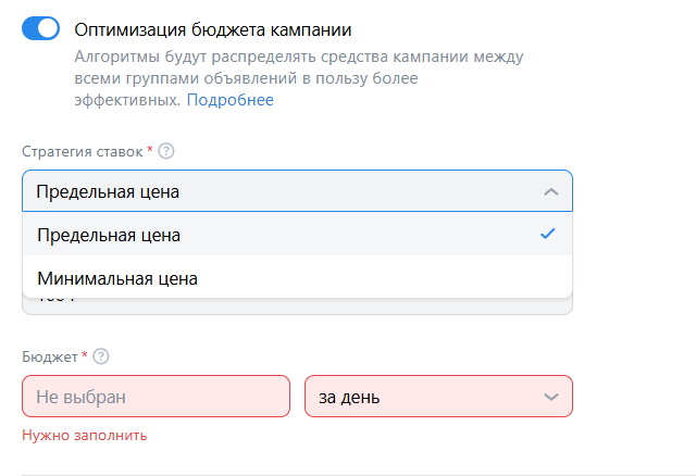 Инструмент «Оптимизация бюджета кампании» поможет распределить выделенный бюджет между объявлениями так, чтобы вы получили больше целевых действий. Поэтому можно поставить чек-бокс.