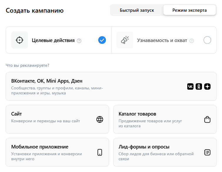 Каталог товаров. Здесь можно рекламировать сайт, мобильное приложение, сообщество ВКонтакте или магазин на маркетплейсе. Реклама сайта позволяет продвигать карточки товаров (e-commerce), недвижимости, транспортных средств или услуг. Из мобильного приложения можно подтягивать такие же карточки. Но, чтобы связать рекламу с программой, нужно будет вставить в него специальный трекер. Подробнее — в справке.