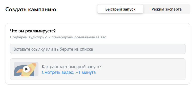 Есть еще смарт-кампании — упрощённый тип рекламных кампаний, он позволяет запустить рекламу за пару шагов. Все настройки аудитории, изображение и текст платформа подбирает автоматически. Подходит владельцам малого и среднего бизнеса.