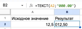 Если в аргументе функции указать ###,## — число также будет приведено к дробному виду, но недостающие символы не будут заменяться нулями.
