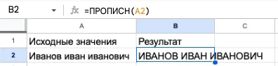 =ПРОПИСН(текст)