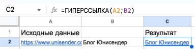 Эта функция создает гиперссылку в ячейке. Обычно Google Таблицы сами делают активной ссылку в ячейке, но бывают ситуации, когда нужно сделать ссылкой конкретное слово или скрыть полный адрес сайта.
