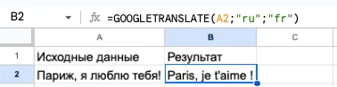 =GOOGLETRANSLATE(текст; [язык_оригинала; язык_перевода])