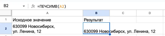 =ПЕЧСИМВ(текст)