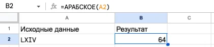 =АРАБСКОЕ(римское_число)