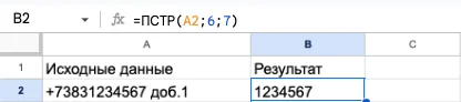 =ПСТР(где_ищем; [начиная_с]; длина_подстроки)