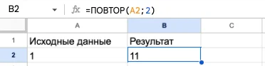 Функция повторяет заданный текст несколько раз. Обратите внимание, функция не добавляет пробелы между фрагментами текста. При необходимости вручную добавьте пробел к тексту, который будет повторяться.