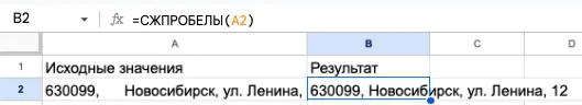 Эта функция убирает лишние пробелы: в начале и в конце строки. Она часто применяется для очистки данных после выгрузки из CRM-систем и в случае, когда количество пробелов имеет существенное значение.