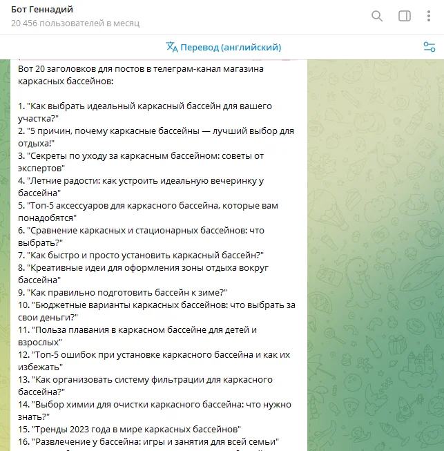 С генерацией идей для постов бот справляется неплохо.