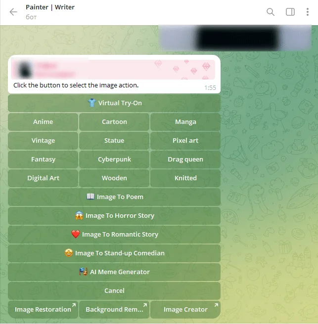 Бот предлагает много вариантов стилизации изображения.