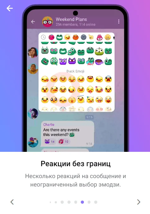 Реакции без границ. Можно оставить несколько реакций на одно сообщение, а выбор эмодзи неограничен.