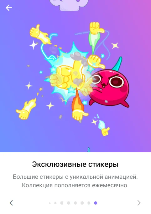 Эксклюзивные стикеры. Премиум-пользователям доступна огромная коллекция анимированных больших стикеров, которая ежемесячно пополняется.