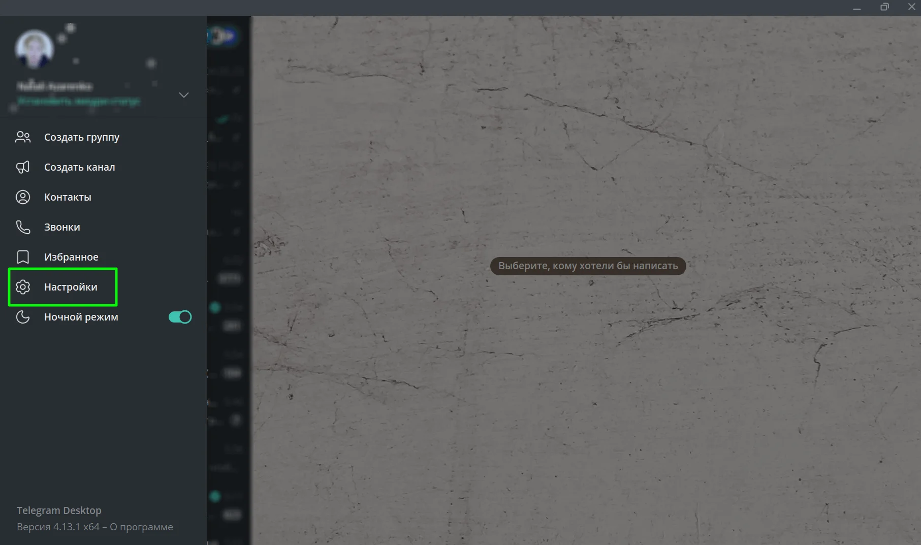 Откройте меню — кликните на иконку «гамбургер» (три горизонтальных линии) в правом верхнем углу. Нажмите на пункт «Настройки».