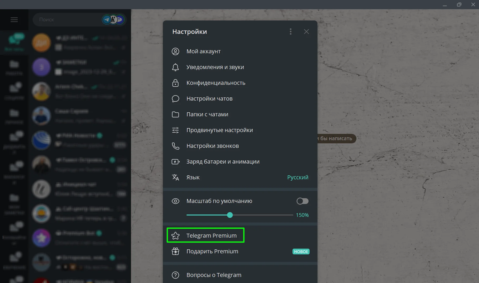 В открывшемся окне кликните на пункт «Telegram Premium».