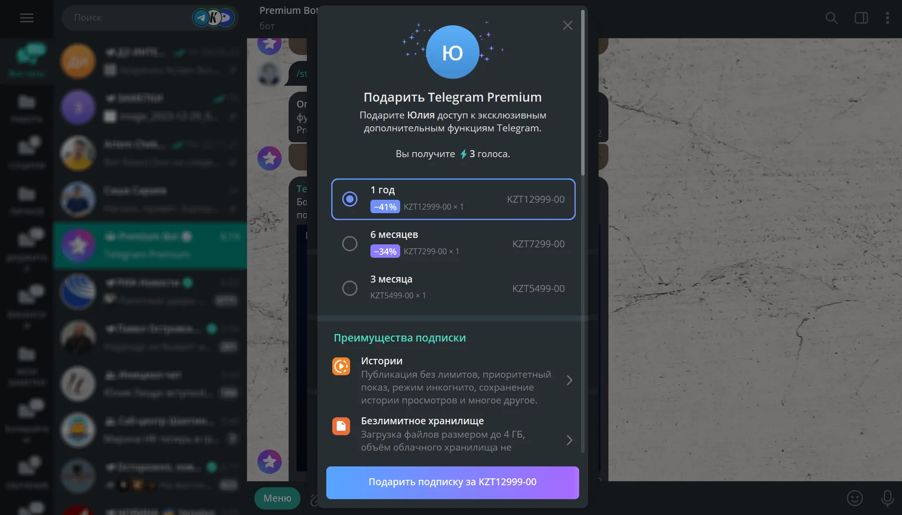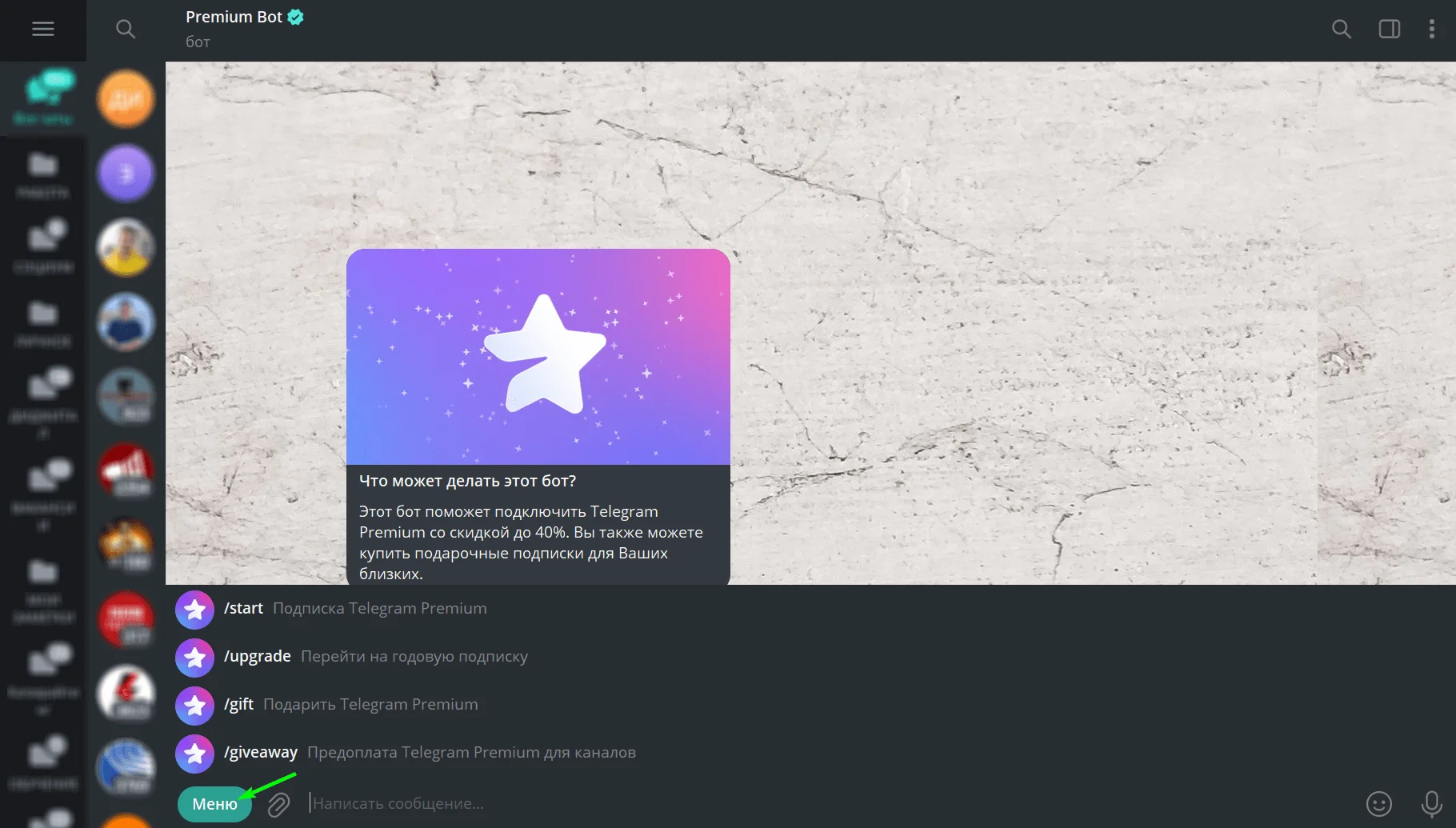 Можно приобрести подписку на мессенджер сразу в @PremiumBot. Бот доступен в веб-версиях Telegram, в десктопных приложениях и официальном клиенте для Android.