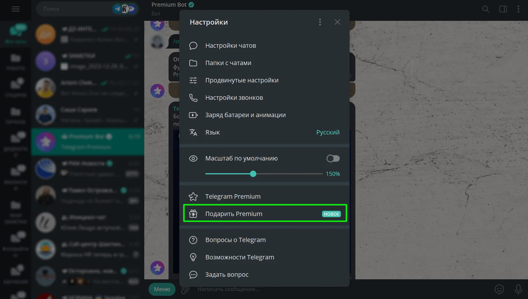 Перейдите в «Настройки» и кликните на «Подарить Premium».