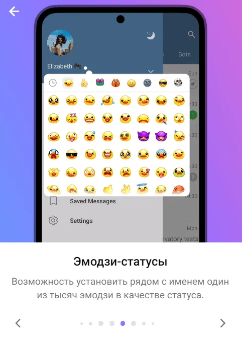 Эмодзи-статусы. Рядом с именем в премиум-версии можно установить любой эмодзи в качестве статуса.
