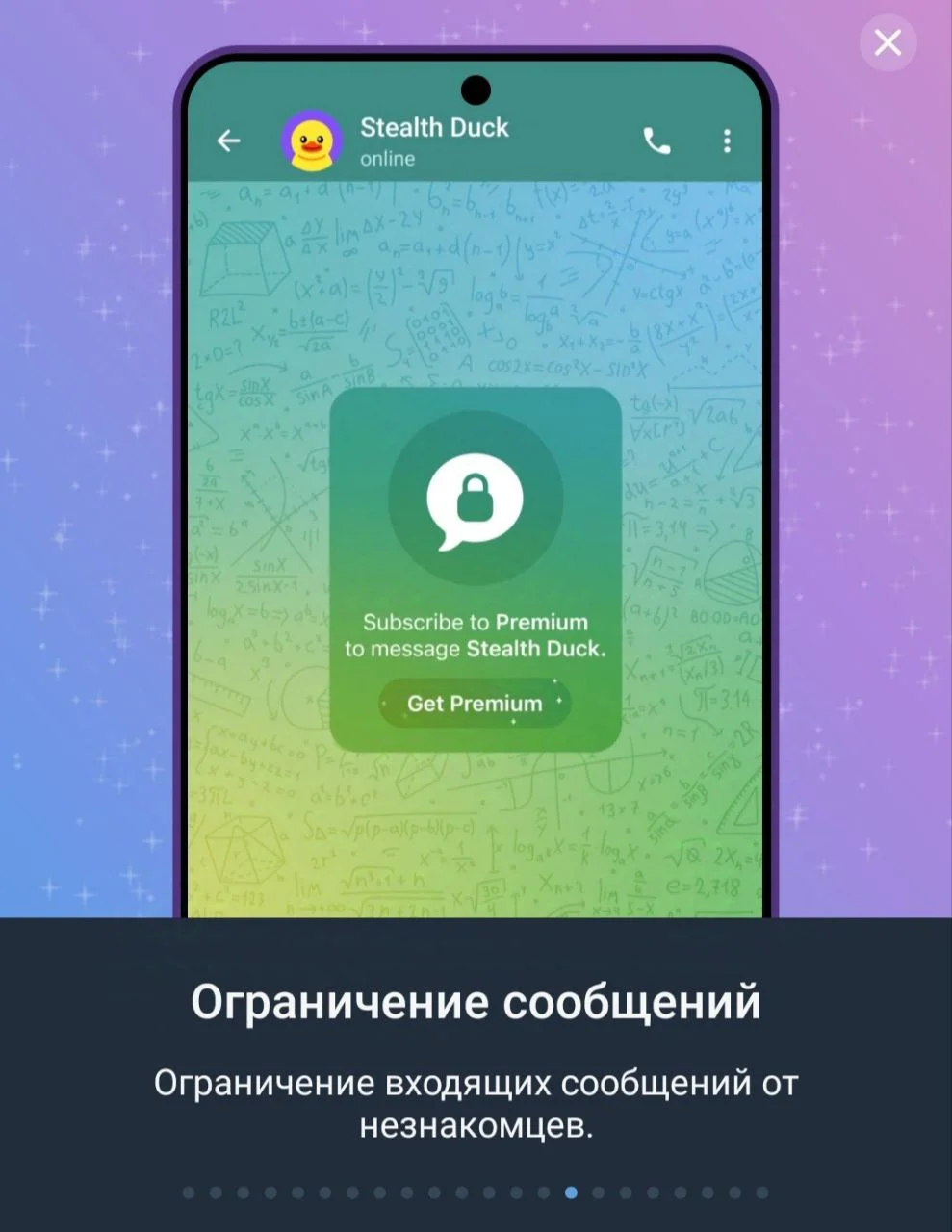 Ограничение сообщений. Можно ограничить количество сообщений от незнакомцев: пользователю смогут писать только контакты и пользователи с Premium-аккаунтом.