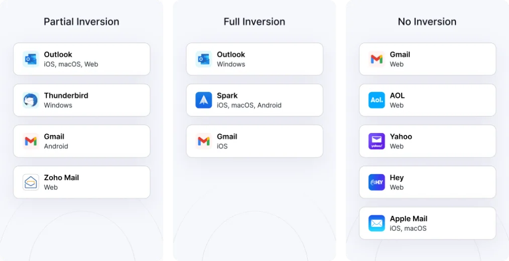 Почтовые клиенты могут поддерживать или не поддерживать тёмную тему, но даже если она у них есть, работает она там очень по-разному. Вот три основных варианта, что они могут делать с вашими письмами в dark mode.