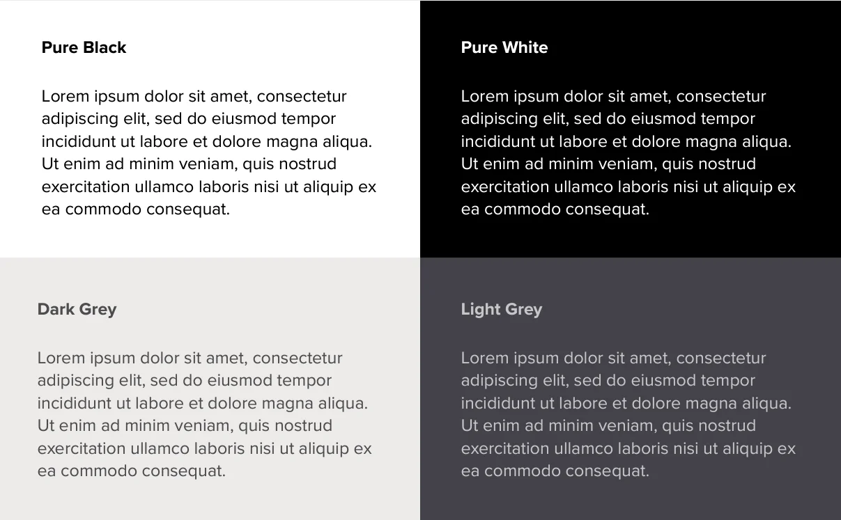 Казалось бы, для более предсказуемого инвертирования стоит выбирать как можно более простые цвета: чёрный на белом не испортить, если превратить его в белый на чёрном. Однако высокая контрастность может плохо влиять на восприятие текста, поэтому лучше предпочесть вариации серого.
