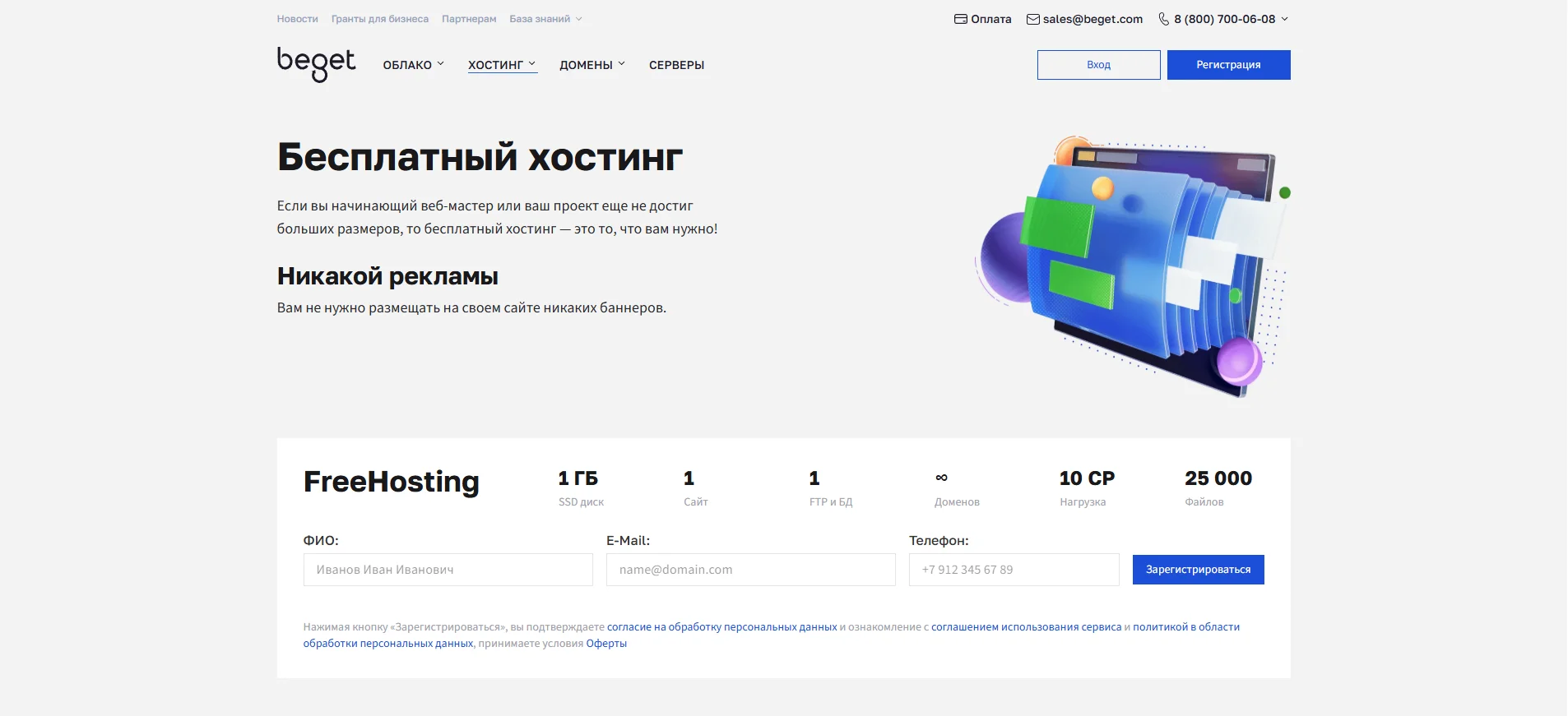 Ссылка на сайт: https://beget.com/ru/hosting/free
