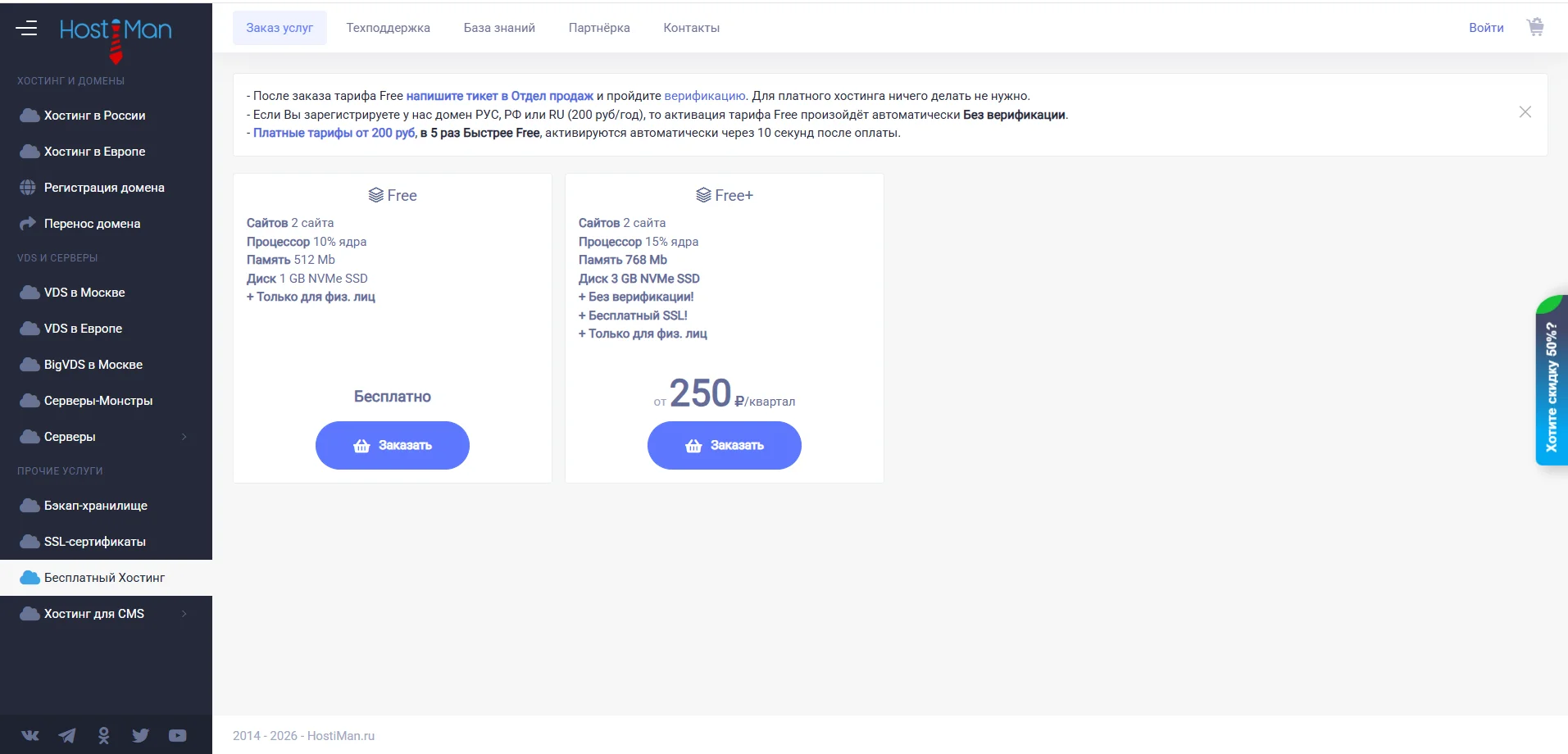 Ссылка на сайт: https://hostiman.ru/free-hosting