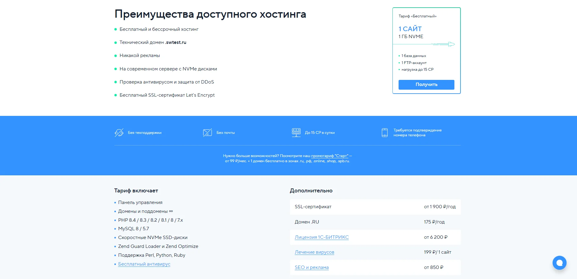Ссылка на сайт: https://sweb.ru/hosting/free/